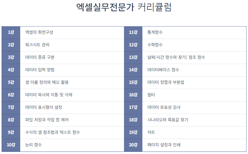엑셀실무전문가과정 은 온라인으로 진행이 됩니다.